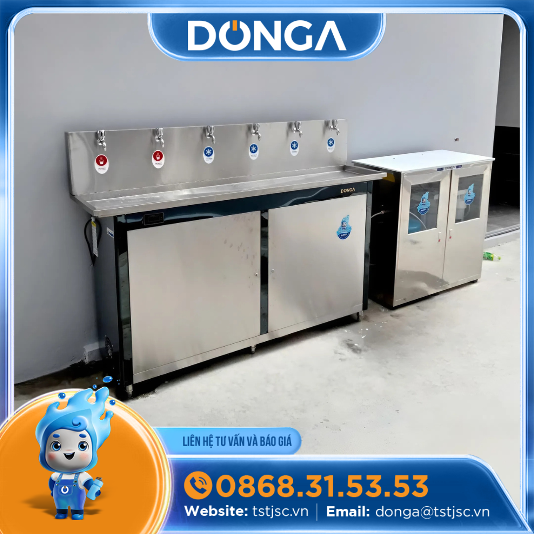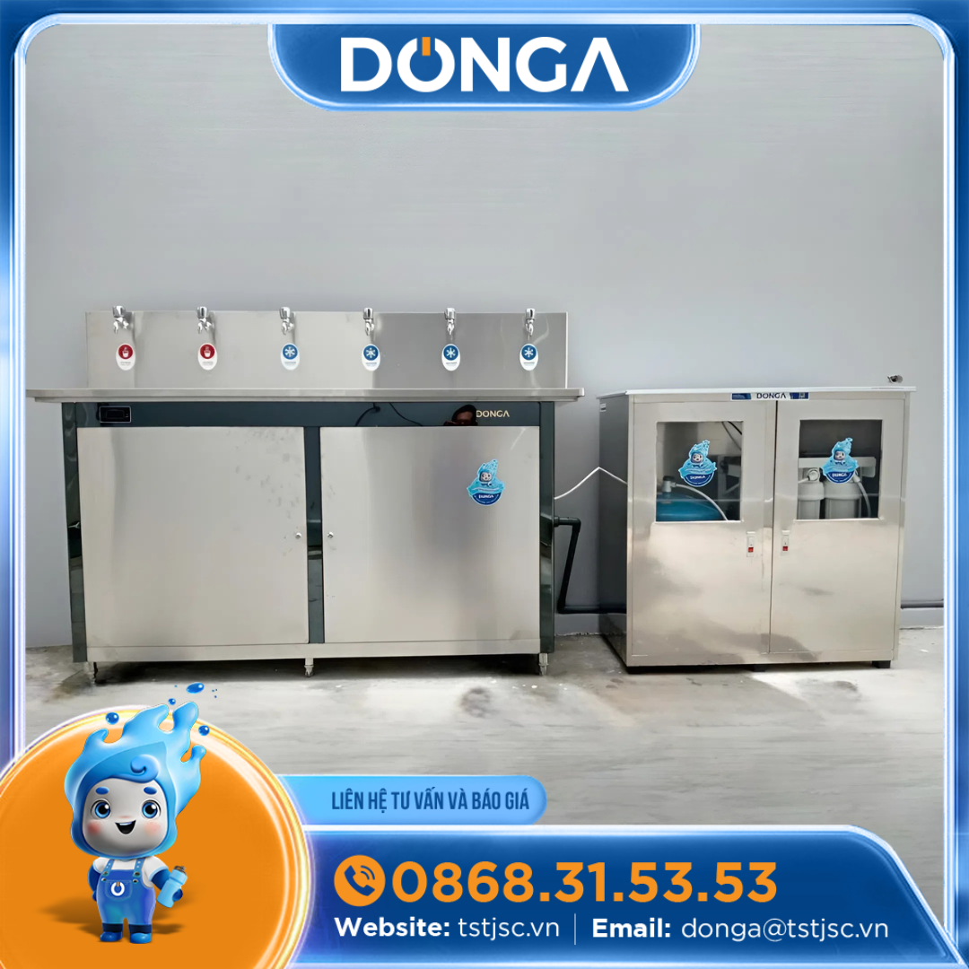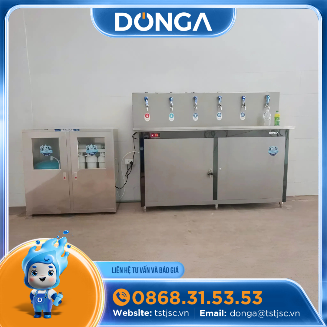 - Đảm bảo nguồn nước sạch: Trong môi trường sản xuất công nghiệp, việc tiếp xúc với các hóa chất và bụi bẩn là không thể tránh khỏi. Máy lọc nước Đông Á với công nghệ lọc tiên tiến sẽ loại bỏ hiệu quả các tạp chất, kim loại nặng, vi khuẩn và virus, cung cấp nguồn nước uống tinh khiết, an toàn tuyệt đối.