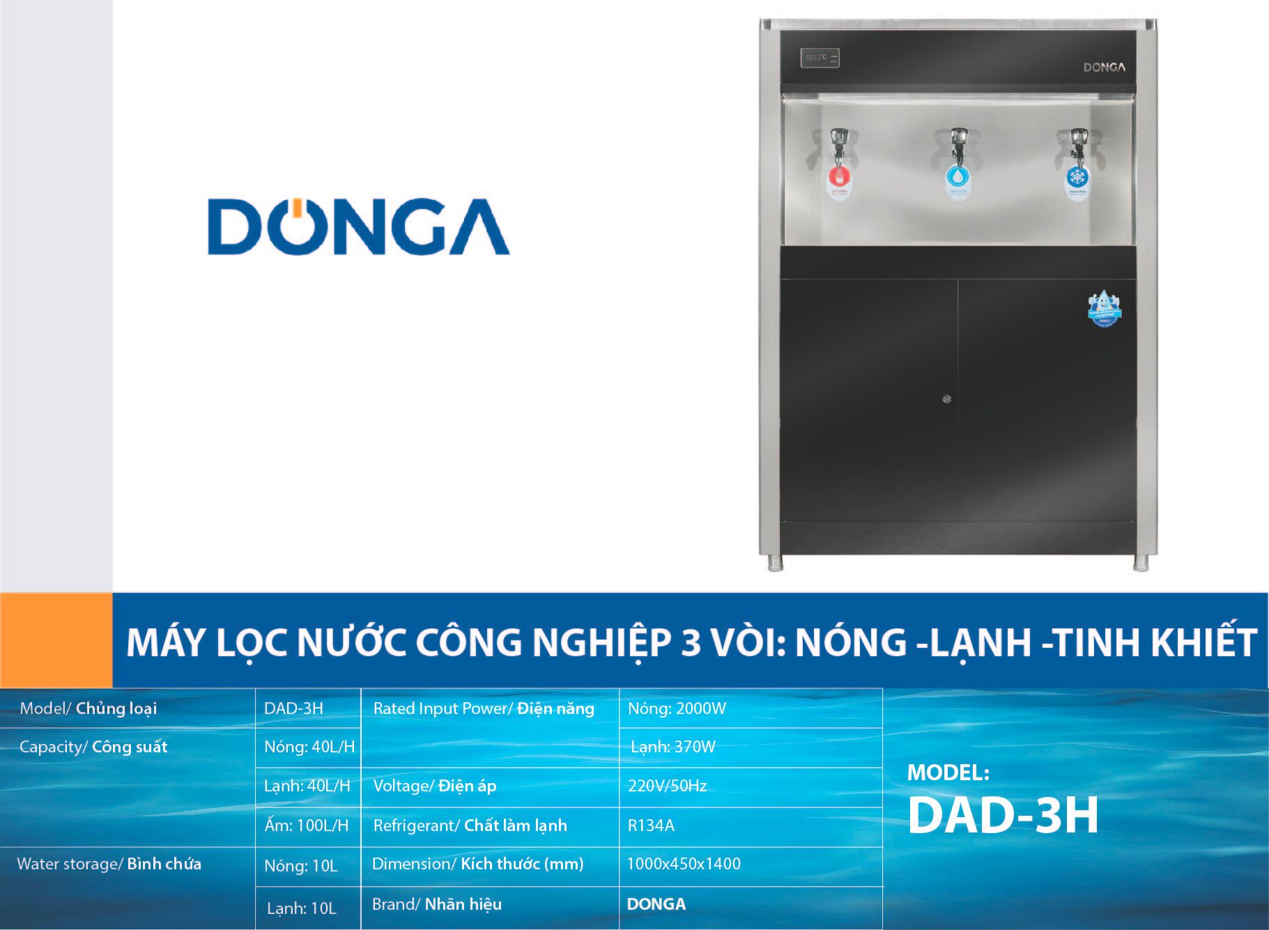 Máy lọc nước nóng lạnh công nghiệp công suất lớn DONGA DAD-3H: